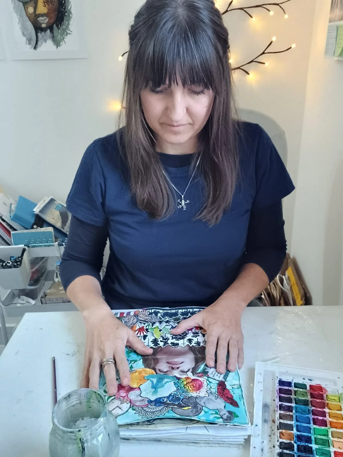 Start with a soft centre using a colour that feels calming. Build outward with shapes, textures, or collage elements.